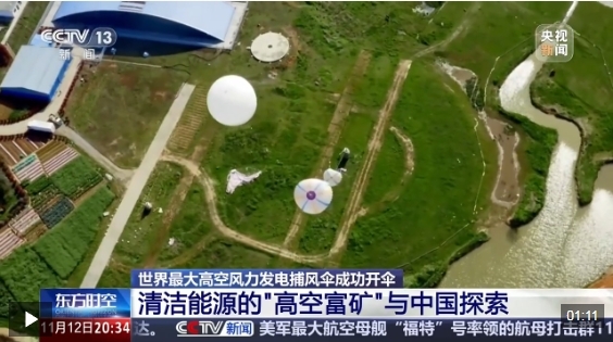 總臺(tái)央視記者:內(nèi)蒙古阿拉善左旗,全球最大高空捕風(fēng)傘實(shí)驗(yàn)測(cè)試現(xiàn)場(chǎng)。隨著氦氣球緩緩升空,牽引著展開(kāi)面積達(dá)5000平方米的捕風(fēng)傘在空中打開(kāi),標(biāo)志著我國(guó)自主研發(fā)的大型傘梯式陸基高空風(fēng)力發(fā)電項(xiàng)目試驗(yàn)取得重要進(jìn)展。
